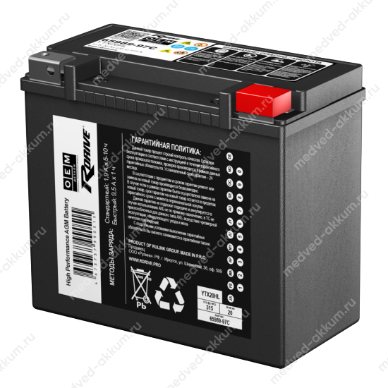 | Артикул | R-D OEM AGM YTX20HL |